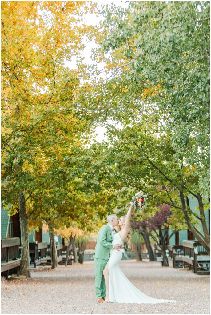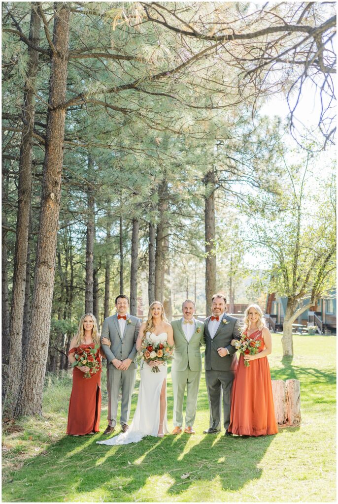 Once family photos were done we grabbed some wedding party photos. We of course started with the iconic cabins before moving over to some more forested shots.