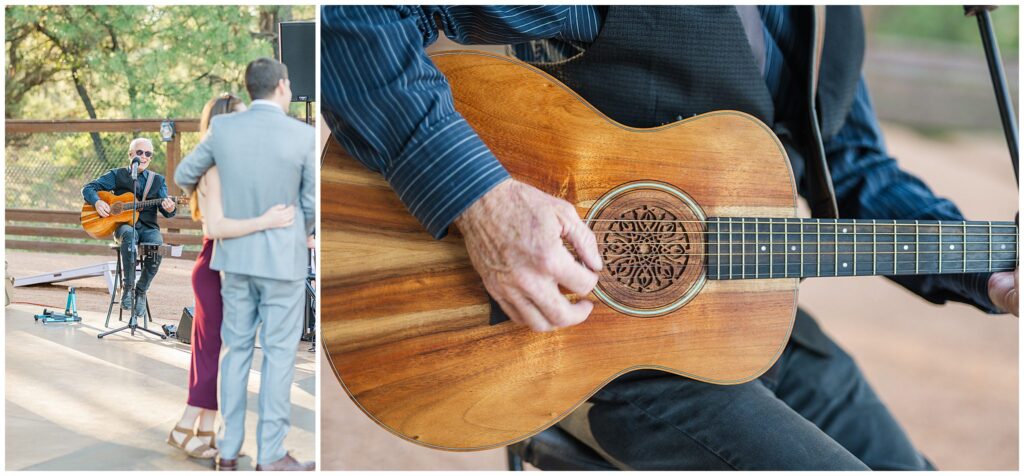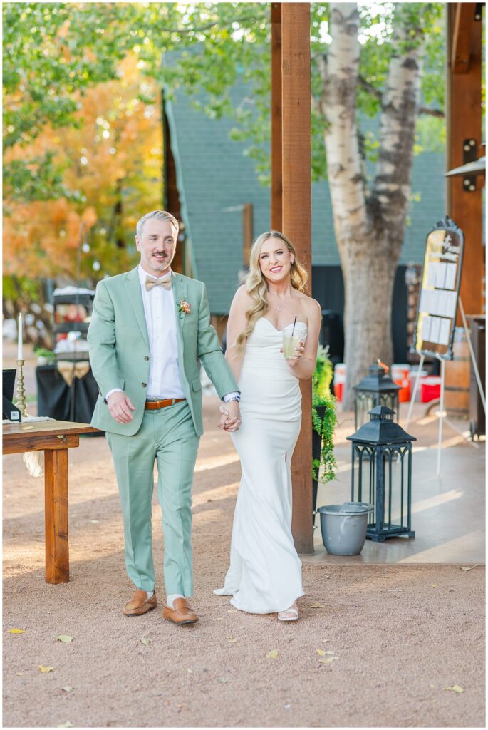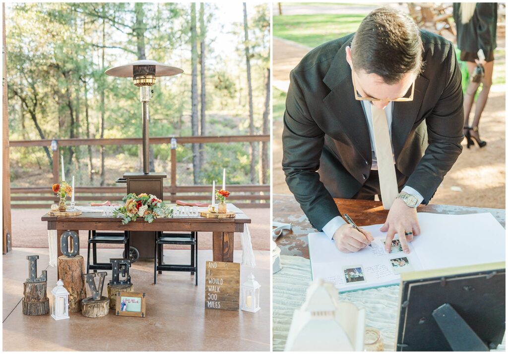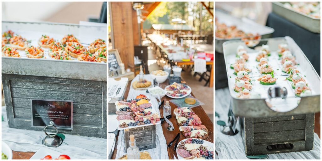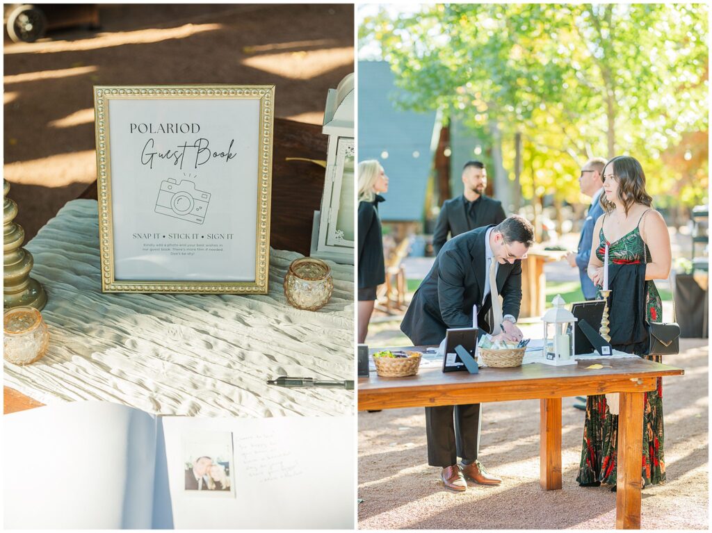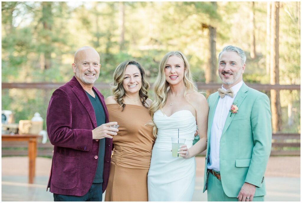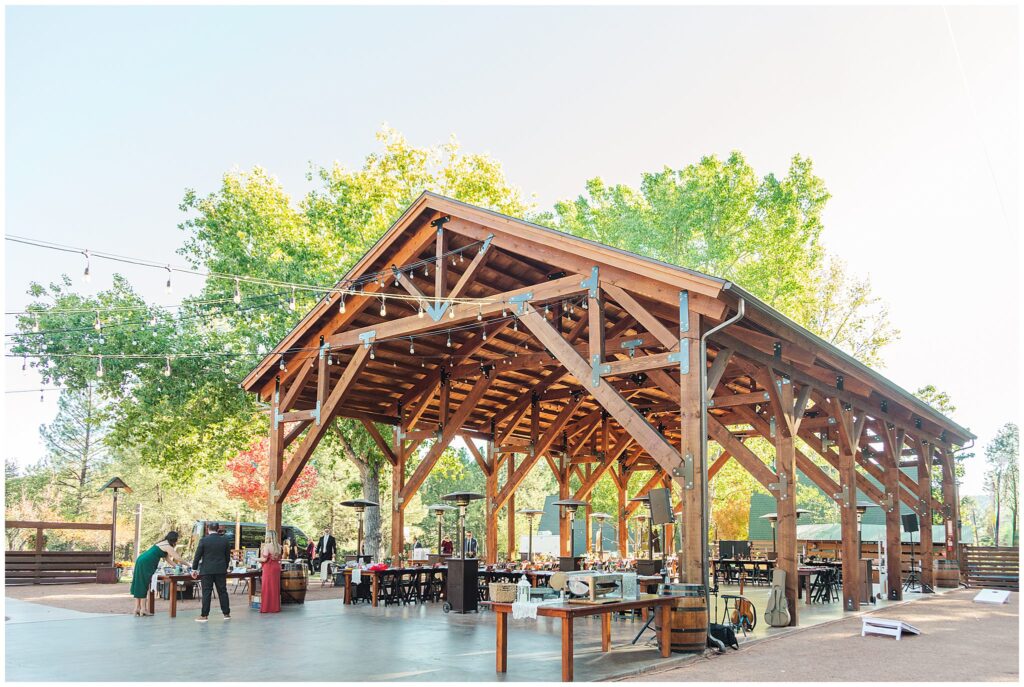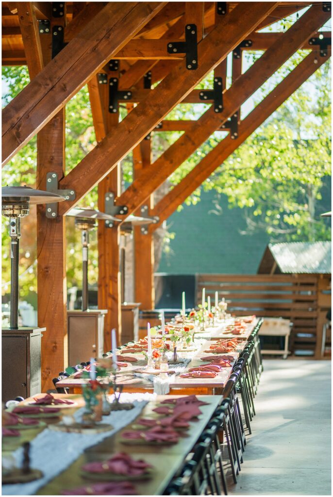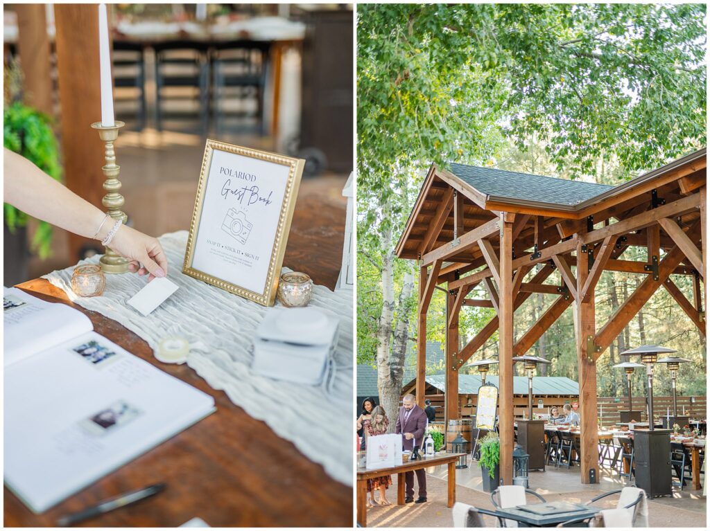 After the ceremony, Paul and Jazmin headed straight into cocktail hour to spend time with their guests. It’s not something every couple chooses to do, but it fit them perfectly. The whole evening had a laid-back, conversational feel, with the BEST guitar music playing softly in the background, friends gathered around the fire, and everyone lingering to enjoy the cool mountain air.