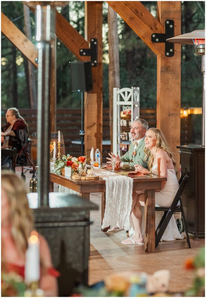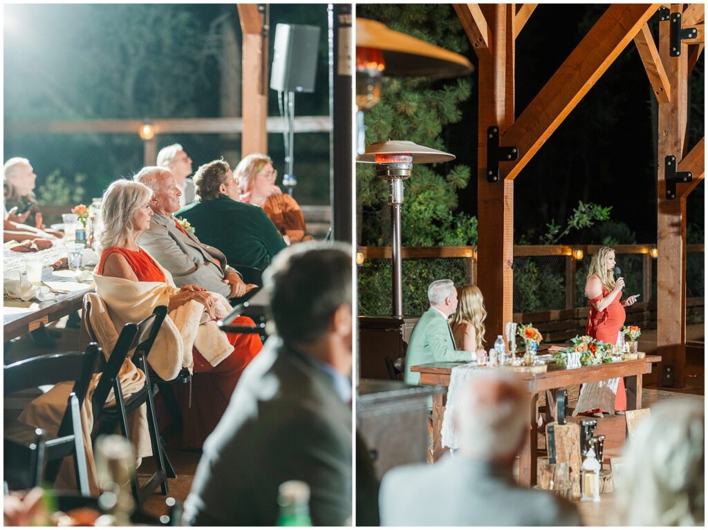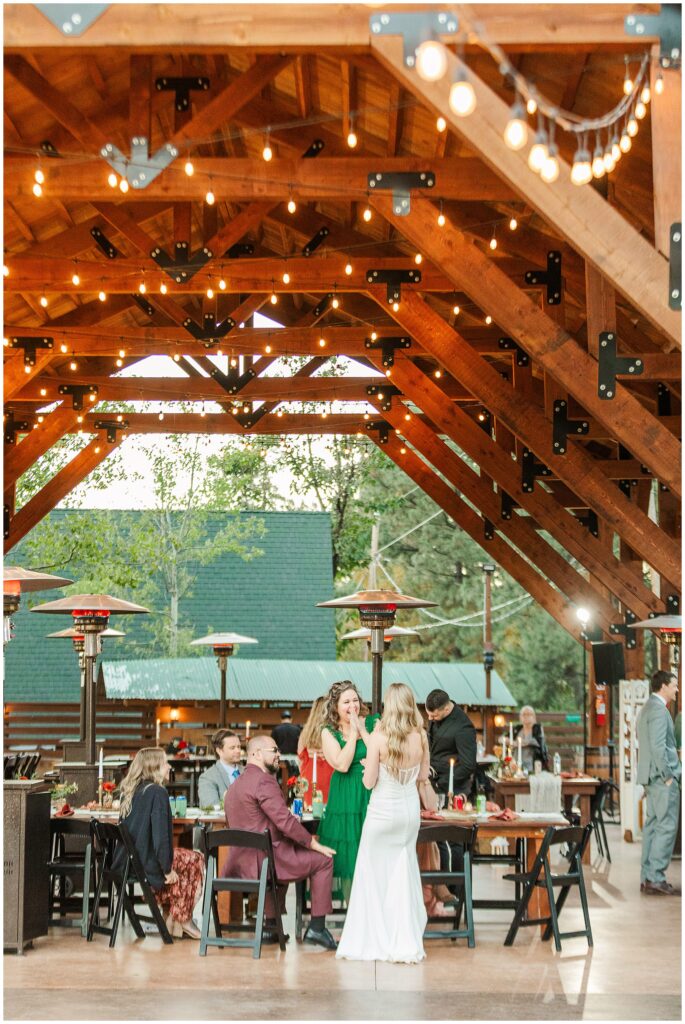 After a few minutes of portraits, they were ready to head back and rejoin their guests. The evening picked up right where they left off, with GOOD food, laughter, and that cozy mountain glow settling in under the string lights.