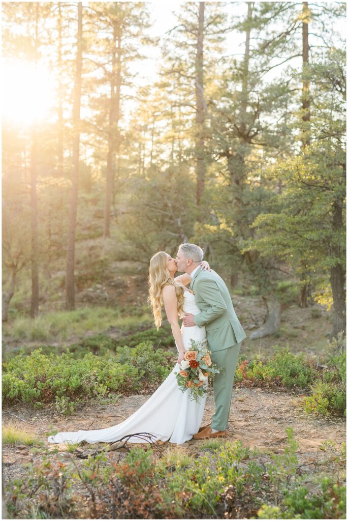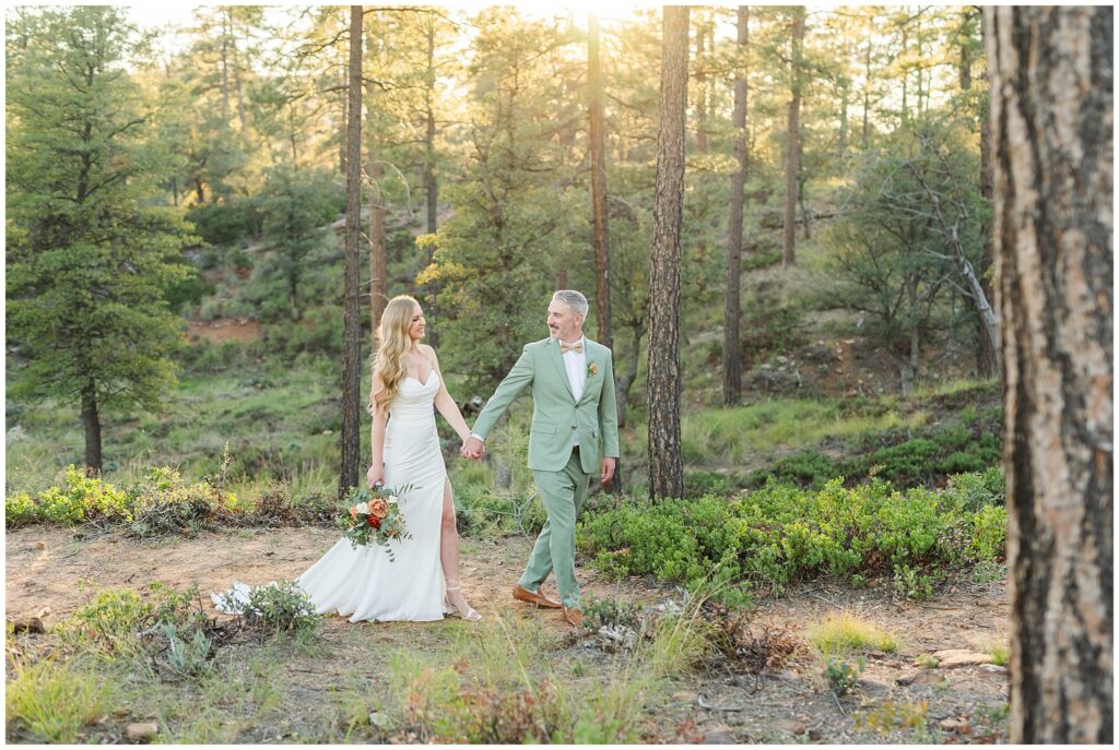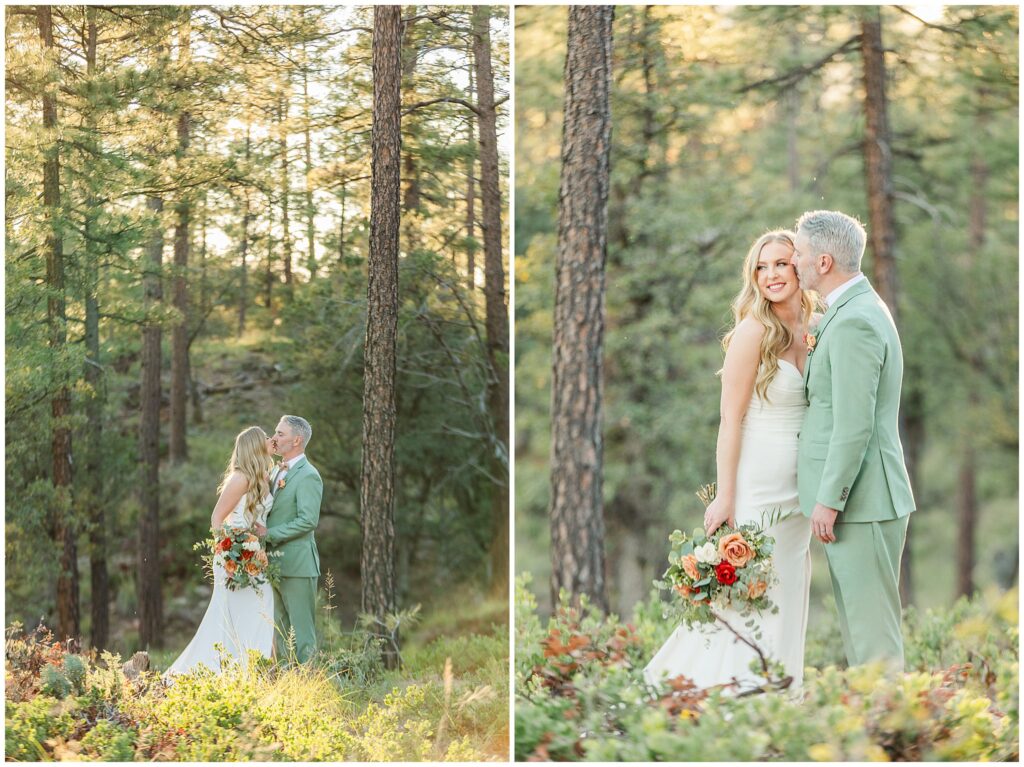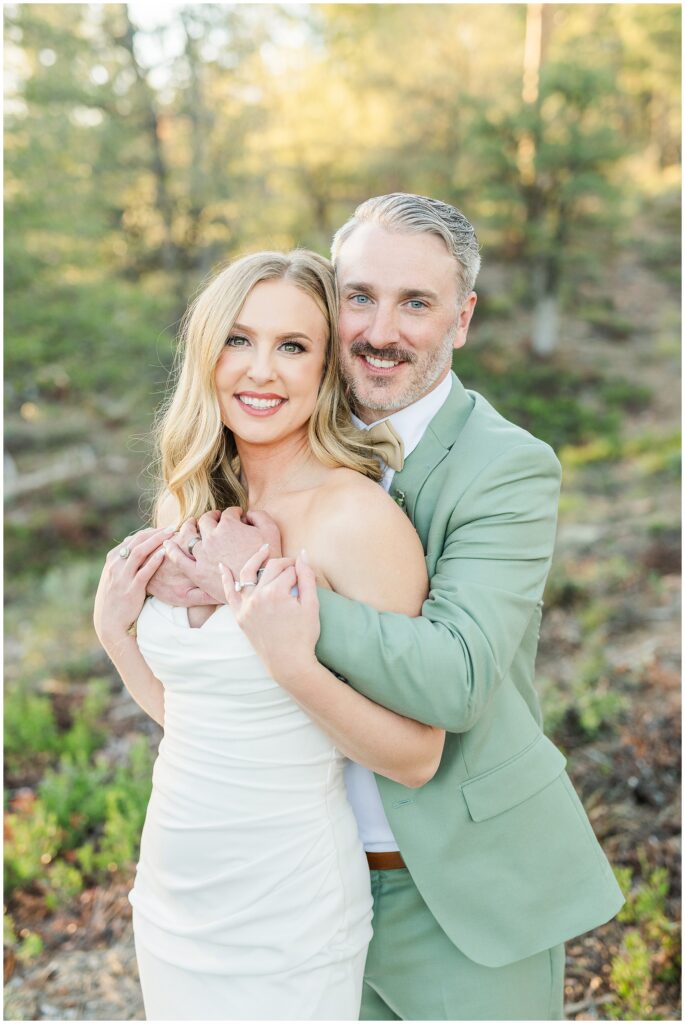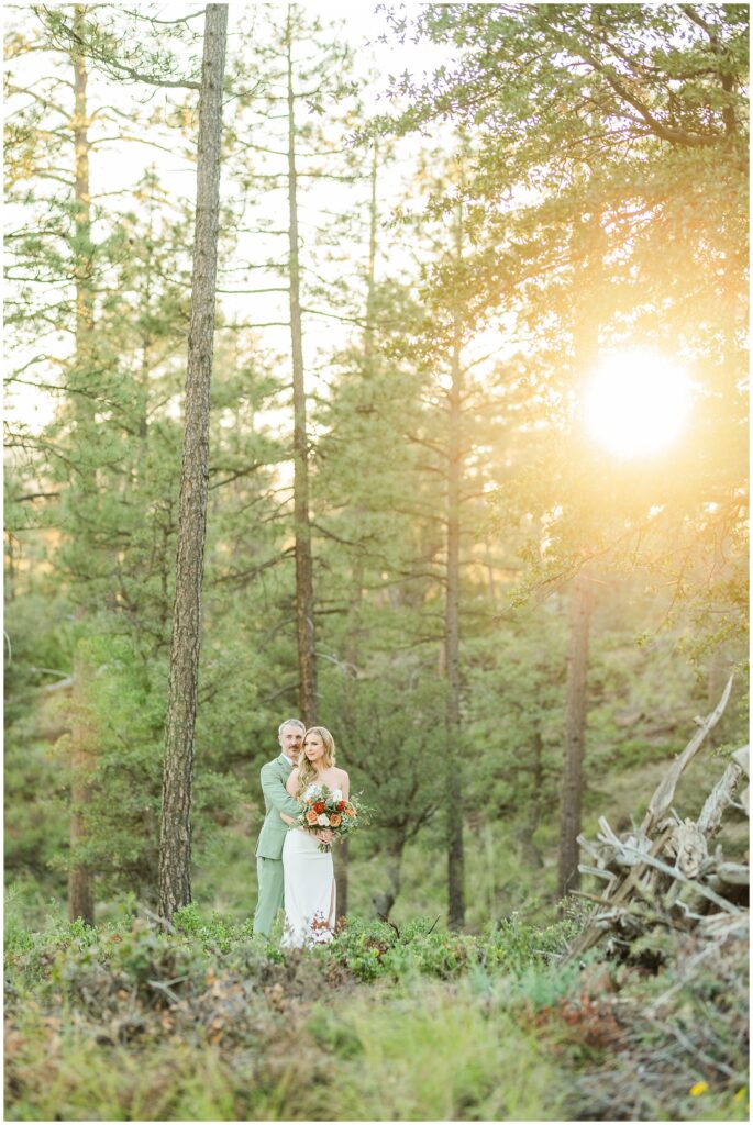 As cocktail hour wrapped up, we slipped away for a few minutes of sunset photos in the forest. The light was soft and golden through the trees, and even though we didn’t stay out long, it was enough to capture that quiet, peaceful feeling that matched their day so well.