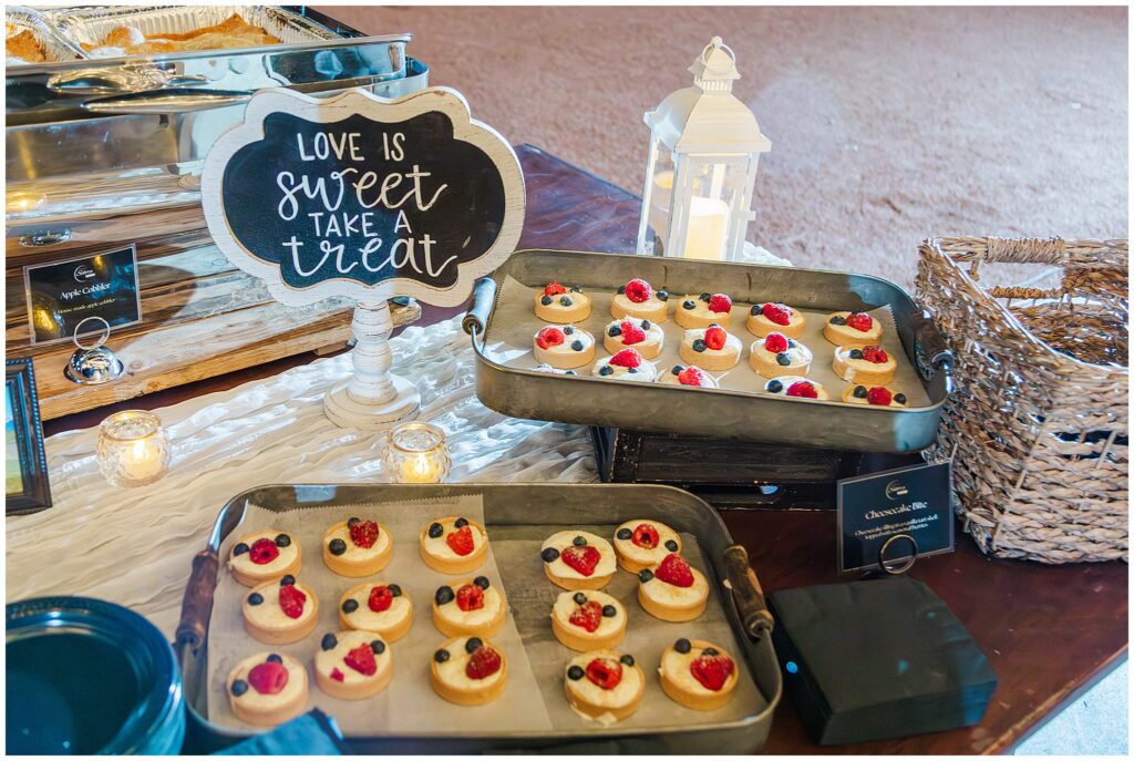 For desserts, Jazmin and Paul opted away from traditional cake and they instead went with cheesecake bites, hot apple cobbler, and vanilla ice cream. It was fabulous!!